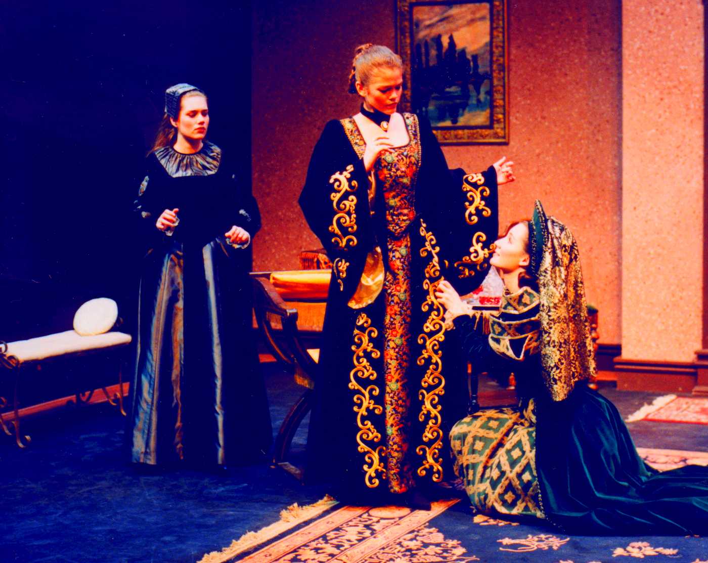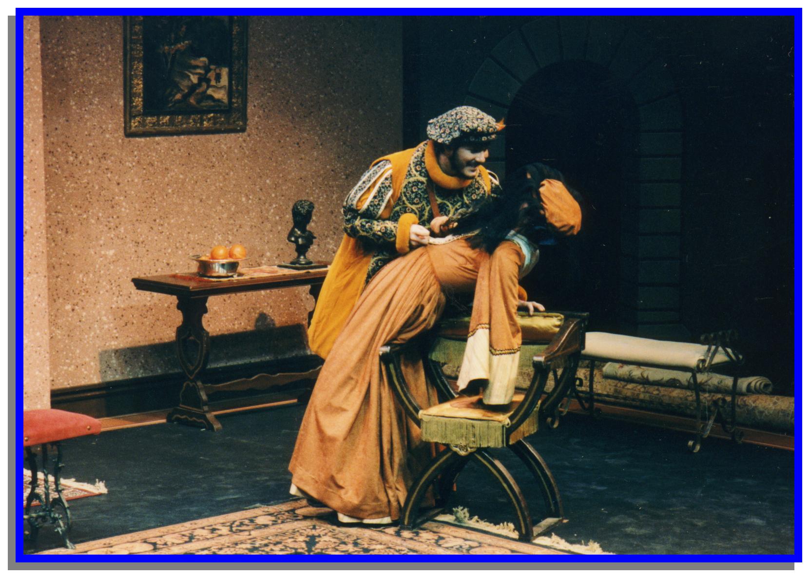 Four views of the staging of David Pasto's translation of Sor Juana's LOS EMPEÑOS DE UNA CASA as it was presented at the annual Siglo de Oro Festival and El Chamizal in 1998. Photos courtesy of David Pasto and photographer Jerry Stewart.